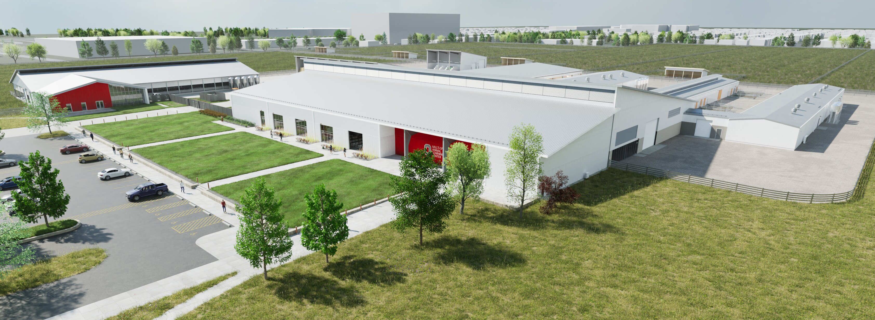 Located across from the Innovation District at Ohio State, the MALC at Waterman Agricultural and Natural Resources Laboratory is aimed at bringing people and animals together while supporting education for students at the university, in grades K-12, and across the lifespan. It will facilitate education in essential STEM fields and foster workforce development for the diverse range of careers related to working in animal agriculture. Inside, students will have opportunities to gain hands-on experience with swine, equine, poultry, and ruminants, and the public will be able to view the workings of modern livestock production and handling facilities.